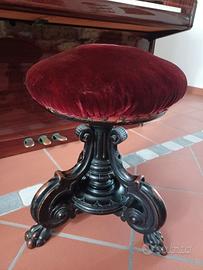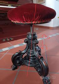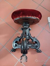Struttura in legno, sedile coperto di velluto rosso. Oggetto molto antico
