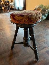 antico sgabello per pianoforte regolabile in altezza color mogano