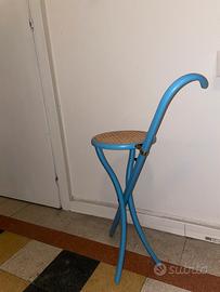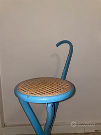 Sgabello pieghevole Thonet collezione azzurro e paglia di Vienna