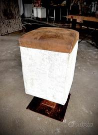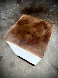 Sgabello pouf pelle e base corten. Dimensioni 40x40x76