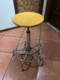 Sgabello seduta in legno e supporto in ferro cromato molto robusto e in ottime condizioni