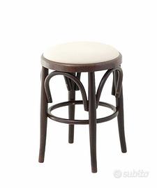 Sgabello nuovo modello 172 in legno di faggio senza schienale con gambe tonde e poggiapiedi in legno.