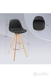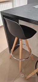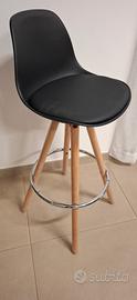 sgabello per isola con gambe in legno e cuscinetto in similpelle nero sulla seduta. vendo per acquisto errato. mai usato. nuovo.