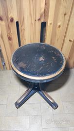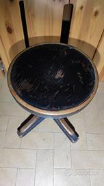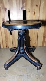 Sgabello vintage in legno rotondo con altezza regolabile.