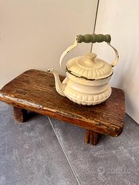 Splendido sgabello o poggiapiedi rustico in legno massiccio, pieno di carattere e storia. Questo pezzo unico incarna perfettamente l'estetica Wabi-Sabi, celebrando la bellezza dell'imperfezione e del tempo. Caratteristiche Principali: • Materiale: Legno massiccio antico, con una patina ricca e profonda. • Artigianato: Costruito utilizzando tecniche di giunzione a tenone visibili e robuste. • Design: Linee pulite, organiche e minimaliste. • Condizioni: Ottime condizioni vintage. Il legno presenta segni naturali del tempo che aggiungono al suo fascino autentico (vedi foto dettagliate). È strutturalmente solido e robusto. • Versatilità: Perfetto come sgabello da meditazione, poggiapiedi davanti alla poltrona, piccolo tavolino d'appoggio per piante o come pezzo d'accento decorativo. Dimensioni Precis: 43 cm x 22 cm x 10 cm Un pezzo d'arredamento unico che porterà calore e anima a qualsiasi ambiente rustico, moderno-organico o industriale.