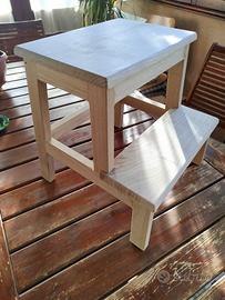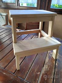 Sgabello -scaletta in legno massello di castagno verniciato naturale