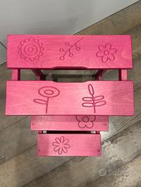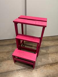 Bellissimo SGABELLO SCALETTA 60x40x46cm in LEGNO di color FUCSIA.