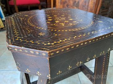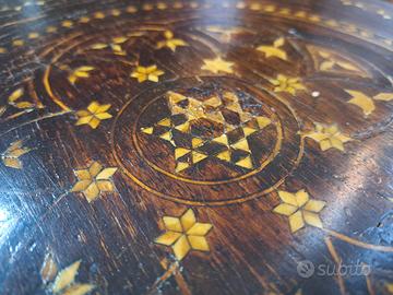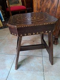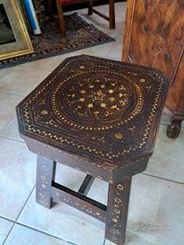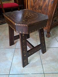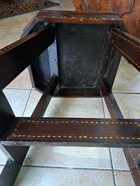 sgabello tavolinetto spagnolo fine 700 in noce riccamente decorato con inserti in madreperla a motivi floreali misura 37x40 piano misura utile 33x35 altezza 45cm...M&P Antichità siamo un negozio specializzato in antiquariato vintage e shabby vendita al dettaglio e all ingrosso scarichi settimanali oltre 500 articoli in negozio, abbiamo una vasta scelta di como comodini tolette armadi letti vetrine vetrinette credenze servanti angoliere librerie tavoli tavolinetti sedie poltrone poltroncine divani lampade lampadari tappeti scrivanie scrittoi secretere ribaltine consolle quadri cornici specchi cassapanche bauli oggettistica varia idee regalo e molto altro ci troviamo a Roma zona Castelverde via Massa San giuliano 26b POSSIBILITÀ DI CONSEGNA E SPEDIZIONE IN TUTTA ITALIA