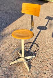 Sgabello tecnigrafo con schienale in faggio, anni '50