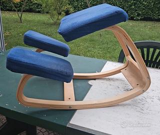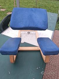 Comodo sgabello per lavorare al PC o alla scrivania e mantenere la colonna vertebrale in posizione corretta. Legno robusto e flessibile, rivestimento in cotone.