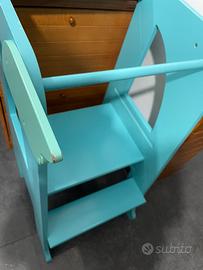 Vendo bn per inutilizzo torretta sgabello montessori per bambini, usato con normali segni si usura ma in buone condizioni generali
