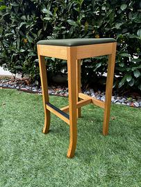 Vendo sgabello di design marca Estel Group, modello Big Jim in legno massello di rovere con cuscino in tessuto color verde oliva.