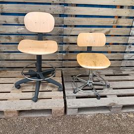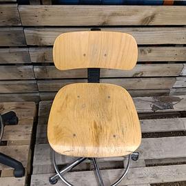 Sgabello vintage industriale, con seduta e schienale in multistrato di faggio.
