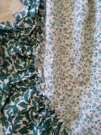 Shabby chic tende + mantovane 2 copricuscini tutto abbinato ed in perfette condizioni motivo a fiorellini verdi lunghezza 270 cm larghezza 90 2 copricuscini stesso motivo larghezza 104 cm altezza 63 cm