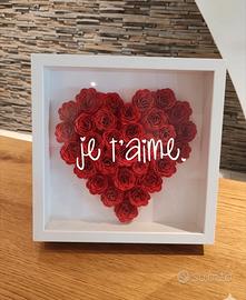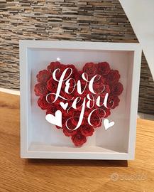 Shadow box San Valentino rose rosse ti amo con cornice bianca.