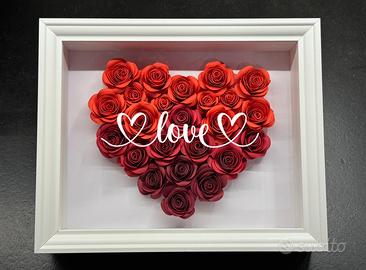 Shadowbox romantica fatta a mano con delicate roselline di cartoncinoš¹