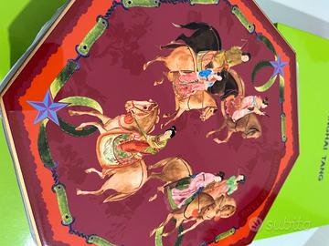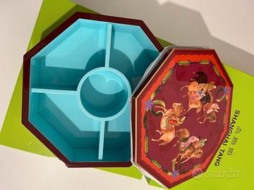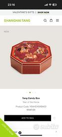 "Jewel Box Shanghai Tang 2026: l’eleganza dell'Anno del Cavallo 2026 firmata Shanghai Tang. Vendo la prestigiosa Tang Candy Box dedicata al Year of the Horse, l'ultimo capolavoro di home decor lanciato dalla maison di lusso Shanghai Tang. Questo oggetto non è solo un contenitore per dolci o gioielli, ma un vero simbolo di forza, fluidità e fortuna, caratterizzato da un design equestre raffinato e moderno. Design: Raffigurazione artistica di cavalli in movimento su motivi architettonici, un perfetto equilibrio tra eredità orientale e stile contemporaneo. Materiale: Legno laccato di altissima qualità, con una finitura lucida profonda ottenuta tramite molteplici strati di laccatura artigianale. Colore: Rosso festivo iconico con accenti retro-chic. Versatilità: L'interno è diviso in scomparti, ideale come scatola per bon-bon, porta-gioie o centrotavola decorativo di lusso. Dimensioni: Circa 29 x 29 x 9 cm. 🎁 Condizioni e Corredo Regalo: L'articolo è NUOVO, mai uscito dalla confezione se non per controllo qualità. Viene fornito con tutto il corredo originale Shanghai Tang, esattamente come in boutique: Scatola originale protettiva, Fiocco regalo logato Shanghai Tang, Shopping Bag (Busta) originale del brand. Si tratta di un'edizione limitata appena lanciata per il 2026, è un pezzo destinato a rivalutarsi nel tempo. Ideale per un regalo di altissimo livello o per collezionisti del brand che desiderano l'ultimo pezzo della collezione Zodiac. Si trova già in Italia, no costi aggiuntivi per dazi, no spedizione internazionale. Prezzo del nuovo: 597 euro"