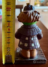 Figura in PVC rigido, alta circa 11 cm, con base effetto legno e la classica lente d’ingrandimento in mano.