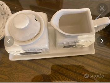 Sia Home Fashion servizio da tea composto da 6 tazze con targhetta in metallo e piattini, teiera, lattiera e zuccheriera con cucchiaino.
