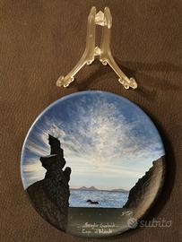 SICILIA / Isole Eolie - PIATTO soprammobile / da appendere DIPINTO A MANO TEMA: mare / scogli / cielo COLORI: blu / nero