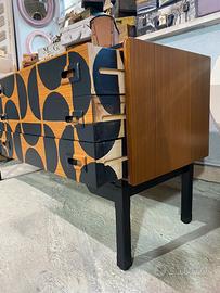 Sideboard vintage anni ‘60 in legno decori neri 6 cassetti conservato bene , compatibilmente con il periodo