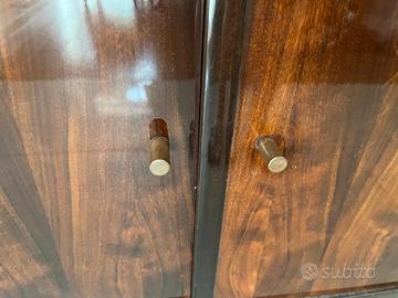 Design minimale con elegante finitura lucida e maniglie in ottone.