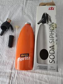Vendo per inutilizzo sifone Aperol Spritz completo di bicchiere esagonale da 2 litri, ricettario e circa70 cartucce di gas per il seltz. Il prezzo è super conveniente.