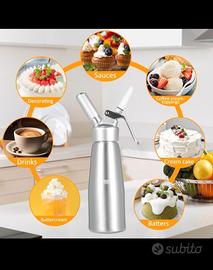Sifone da Cucina e Bar, in alluminio molto spesso, per Panna Montata, Spume, Creme.