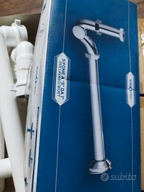 lotto sifoni per bagno, in plastica salvadpazio marca lyra ed in metal ad S per bidet sospeso, incluso anche piletta con campana montata solo per prova. sifoni invece muovi mai montati