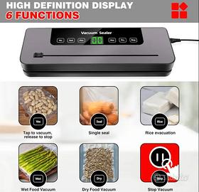 Macchina per Sottovuoto con Spina UE e 10 Sacchetti, Macchina Multifunzionale Compatta per la Conservazione Alimentare sottovuoto per Mantenere la Freschezza del Cibo
