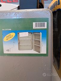 Robusta cassetta portachiavi da parete in acciaio verniciato, ideale per uffici, condomini, officine e attività commerciali. Dotata di serratura con chiave e capacità fino a 48 chiavi numerate per una gestione ordinata e sicura. Struttura solida, finitura goffrata antigraffio e installazione semplice a muro. Made in Italy.