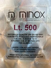 Serbatoio Contenitore Inox per Vino con Galleggiante ad olio enologico da 500 litri completo di base e coperchio sempre in acciaio inox. Usato solo una volta.