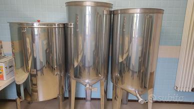 Si vendono silos in acciaio inox utilizzati per stoccaggio miele, tenuti pari al nuovo, di diverse misure, completi di coperchio e valvola