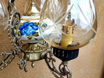 "Sinfonia di Fiori" - Lampadario vintage in porcellana e vetro, Italia, anni '60-'70