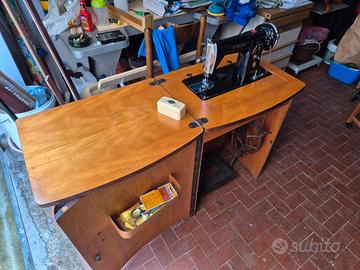 Funzionamento: A pedale (meccanica a cinghia con mobiletto treadle). Perfettamente funzionante, meccanismo fluido (da controllare cinghia).