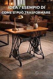 Struttura in ghisa SINGER Sistema a pedale (treadle) completo funzionante → tipico delle macchine a cucire manuali Decorazione “The Singer Mfg Co” Piano in legno originale , con segni di usura del tempo , con vano per macchina (la macchina sopra manca) Come potrebbero essere trasformato e usato oggi: Ottimo per #Base per tavolo industriale / design #Consolle vintage porta computer #porta TV Mobile decorativo. nelle foto starà inserita una proposto/ esempi /ed idea creata da AI di come la si può trasformazione ed utilizzare (trasformazione ed integrazione a cura del acquirente ) la foto ha solo lo scopo di esempio e non ė il prodotto che sarà venduto , viene venduto solo base e piano come descritto all inizio e come da foto . Ritiro da parte del acquirente per eventuale spedizione , le Spese e gestione corriere sono a cura del compratore