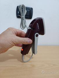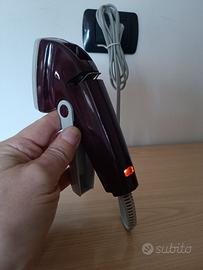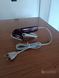 Attrezzo per riparare strappi e buchi su tessuti, tramite punzonatore e placca riscaldata per fissare il rappezzamento