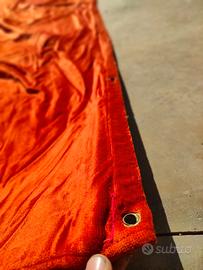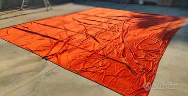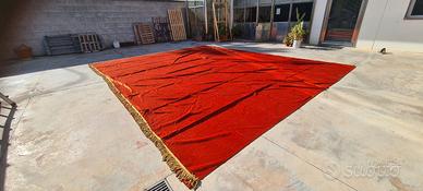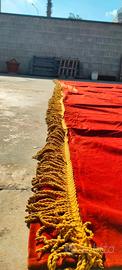 Vendo sipario in velluto color rosso/rame con frangia dorata in basso ed occhielli in alto. Privo di certificazioni. Diviso in due metà Dimensioni di ciascuna delle metà tesa: Altezza 5,50 mt - Larghezza 6,80 mt