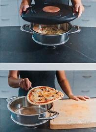 Disponibile sistema di cottura professionale AMC di ultima generazione, ideale per chi cerca il massimo della tecnologia in cucina e il risparmio energetico. Componenti inclusi nel sistema: Unità Navigenio: Unità di cottura a conduzione intelligente. Può essere utilizzata come piastra automatica o capovolta sulla pentola per trasformarla in un forno (ideale per pizze in 4 minuti). Audiotherm: Il 'cervello' del sistema che monitora la temperatura e ti avvisa sul cellulare o tramite segnale acustico quando il cibo è pronto. Tecnologia Akkutherm: Fondo ad accumulo termico che permette di cucinare a fuoco spento, risparmiando fino al 70% di energia rispetto ai sistemi tradizionali. Perché scegliere questo sistema: Velocità Record: Risotti pronti in 8 minuti e ragù in 20 minuti (se abbinato a unità Secuquick). Salute: Acciaio inox di qualità chirurgica, permette di cucinare senza grassi e oli aggiunti, preservando le vitamine. Versatilità: Sostituisce il forno tradizionale per molte preparazioni, riducendo drasticamente i consumi in bolletta. Fornisco il sistema completo di garanzia ufficiale e assistenza post-vendita. Disponibile per visione tecnica del catalogo e test di compatibilità con le tue attuali unità AMC a Marostica, Bassano e provincia. Contattami per dettagli tecnici, prezzi delle configurazioni o per fissare una prova pratica del sistema.