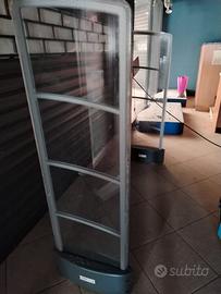 Sistema di Antitaccheggio completo di: - Barriere da negozio antitaccheggio. - Placche rigide di plastica, di varie tipologie, con un sistema di bloccaggio e fissaggio adatto alla protezione non solo di abiti ma anche di borse e scarpe - Distaccatore Antitaccheggio