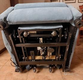 Sistema Lift Alzapersona Permette di raggiungere con facilità la stazione eretta Relax a 1 motore Movimento della pediera anticipata rispetto alla reclinazione dello schienale Raggiunge la posizione semidistesa Per un relax totale Comodo schienale ergonomico Alette appoggiatesta Semplice telecomando a 2 tasti Tasca laterale Azzurra