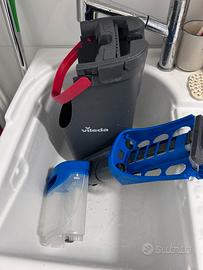 Secchio e spazzolone con straccio piatto del Sistema Vileda H2pro Flat Mop, completamente smontabile, usato pochissimo. Spazzolone estensibile, straccio molto pulente con una sola passata, ottimo prodotto, condizioni come nuovo. Vendo per mancanza di spazio a seguito trasloco. Tutto smontabile, ogni parte è lavabile. Prezzo da nuovo €49,90
