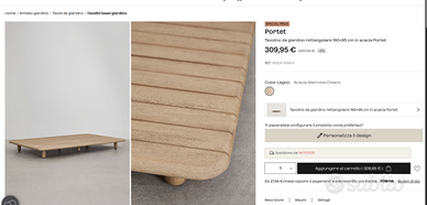 Sklum linea portet Tavolino da giardino quadrato 160x95 cm in acacia. Ancora in scatola