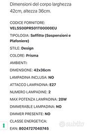 Lampada SLAMP modello VELI PRISMA sospensione Diametro 42 cm Attacco E27