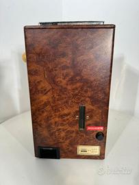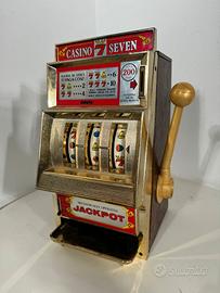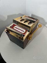 SLOT MACHINE vintage anni 80’ misure 35x25x20 cm. Materiale metallo e movimento meccanico. Perfettamente funzionante con le vecchie 20” Lire. Condizioni come in foto. Acquistiamo e vendiamo oggetti e arredi. Per vedere tutti gli annunci e avere informazioni seguici sulle nostre pagine social: @alexdesignmilano.