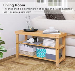 SMIBUY Panca portascarpe in bambù, 86 x 28.5 x 45