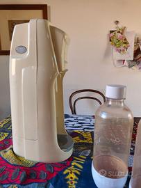 Apparecchio per produrre acqua frizzante. Usato per anni, ma perfettamente funzionante. Vecchio modello (attualmente è il modello Jet). Una bomboletta di CO2 da 10 € fa 50-70 litri d'acqua gassata (dipende da quanto la vuoi gassata). Altezza: 43 cm.