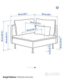 Modulo angolare divano linea SODERHAMN. Acquistato Settembre 2025 e utilizzato solo come arredamento. Completo di cuscini e Fodera Grigio Antracite (sfoderabile e lavabile)