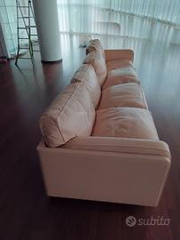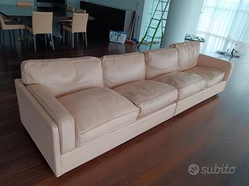 Uno dei più bei modelli di Poltrona Frau, divano squadrato e basso in pelle rosa, divisibile in due parti.