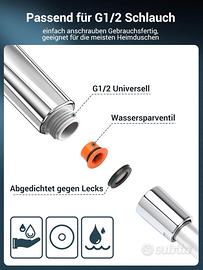 Il soffione è compatibile con raccordi G1/2 universali, adatto alla maggior parte dei tubi standard. L’installazione è intuitiva e richiede meno di un minuto, senza bisogno di attrezzi.